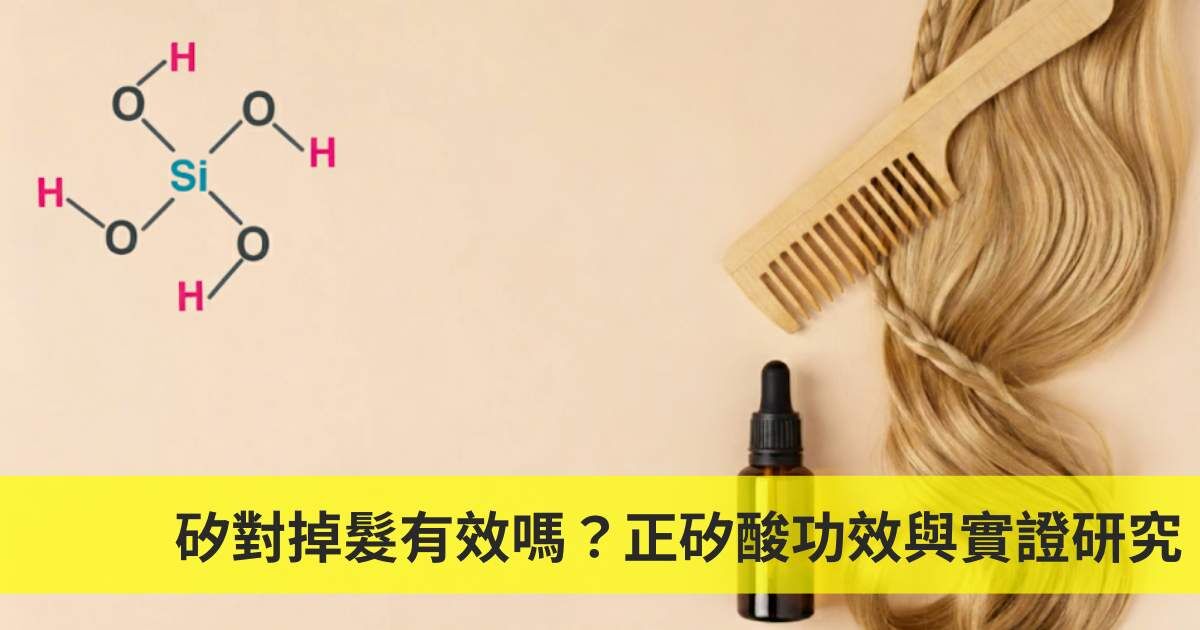 4、胺基酸:角蛋白、膠原蛋白的基本構成單位,穩定毛髮健康結構營養師小叮嚀:挑選矽產品的關鍵首選正矽酸 (OSA),吸收率高,效果更佳。搭配關鍵養髮營養素(生物素、鋅、維生素 C、胺基酸),能發揮協同作用。同時,也別忘了日常頭皮保養:規律生活、均衡飲食、頭皮清潔,才能讓補充效果更明顯。結論:養髮從養「根」做起養髮一定要從從毛囊與頭皮健康開始。矽雖然低調,但在膠原蛋白、結締組織與髮纖維品質上都扮演不可或缺的角色。若想真正強化髮質、減少掉髮,別忘了選擇吸收率高的 正矽酸,再搭配其他關鍵營養素,讓養髮效果「事半功倍」,讓養髮策略不只是「頭皮保養」,更是「毛囊升級」。下次挑選養髮保健品時,記得看看成分表裡有沒有這位默默努力的「矽」隊友吧!參考資料Orthosilicic acid stimulates collagen type 1 synthesis and osteoblastic differentiation in human osteoblast-like cells in vitroBarel, A. et al. (2005). Effect of oral intake of choline-stabilized orthosilicic acid on skin, nails and hair in women with photodamaged skin. Arch Dermatol Res, 297(4):147–153.Wickett, R. et al. (2007). Effect of oral intake of choline-stabilized orthosilicic acid on hair tensile strength and morphology in women with fine hair. Arch Dermatol Res, 299(10):499–505.Araújo, L. et al. (2016) Use of silicon for skin and hair care: an approach of chemical forms available and efficacySripanyakorn, S. et al. (2009). The comparative absorption of silicon from different foods and food supplements. British Journal of Nutrition, 102(6):825–834.Silica For Hair: Benefits, Side Effects and More | Take Care by Hers EFSA Panel on Food Additives and Nutrient Sources added to Food (2009). Scientific Opinion on the safety of silicon dioxide, silicates and orthosilicic acid as sources of silicon added for nutritional purposes. EFSA Journal, 7(9):1289.