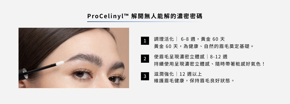 每天早晚徹底清潔臉部後,刷在眉毛的根部塗抹一至兩遍,使用後無需沖洗