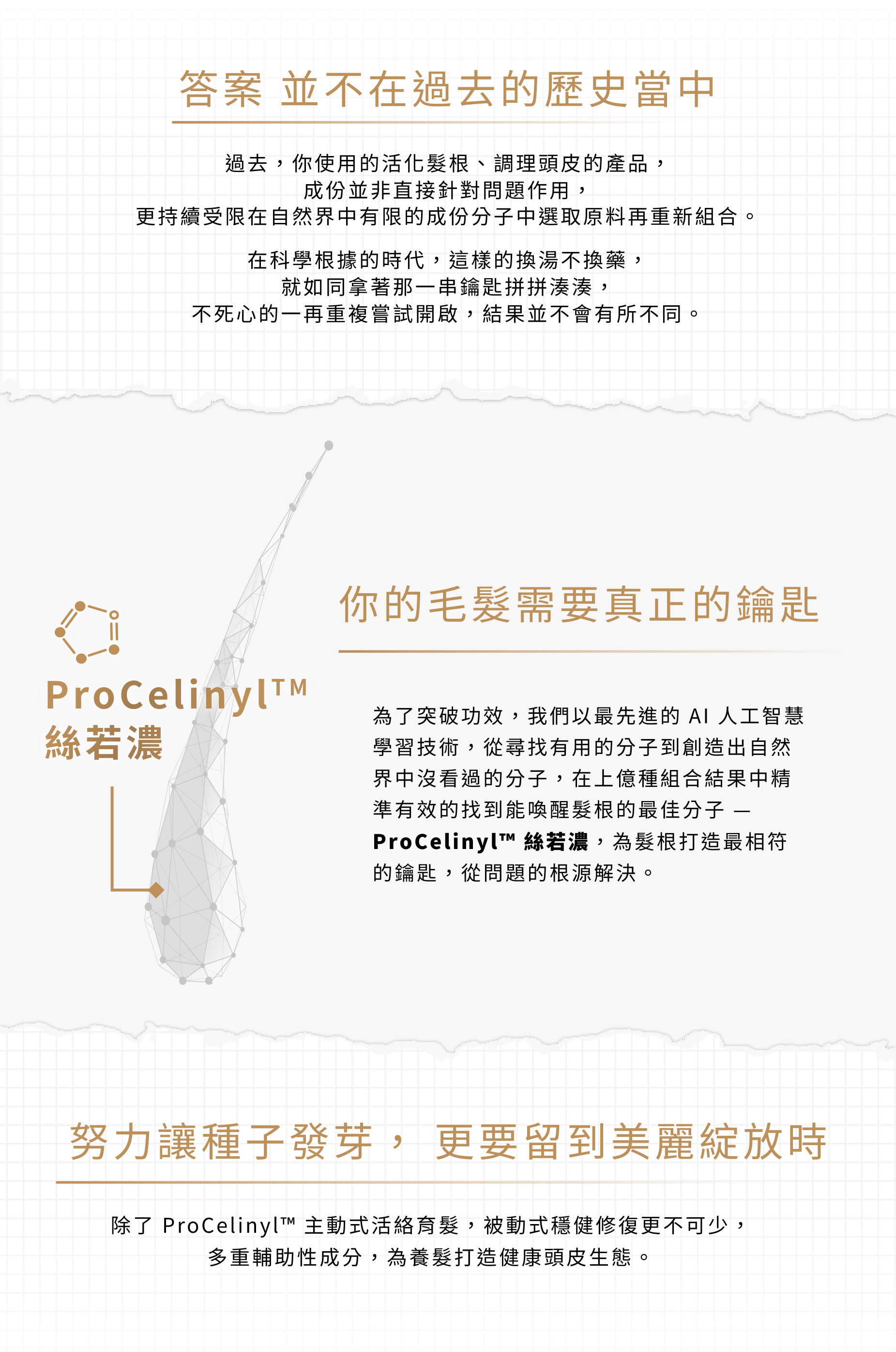 ・唯一:使用全新成分ProCelinyl™,擺脫市場上無法解決的消費需求